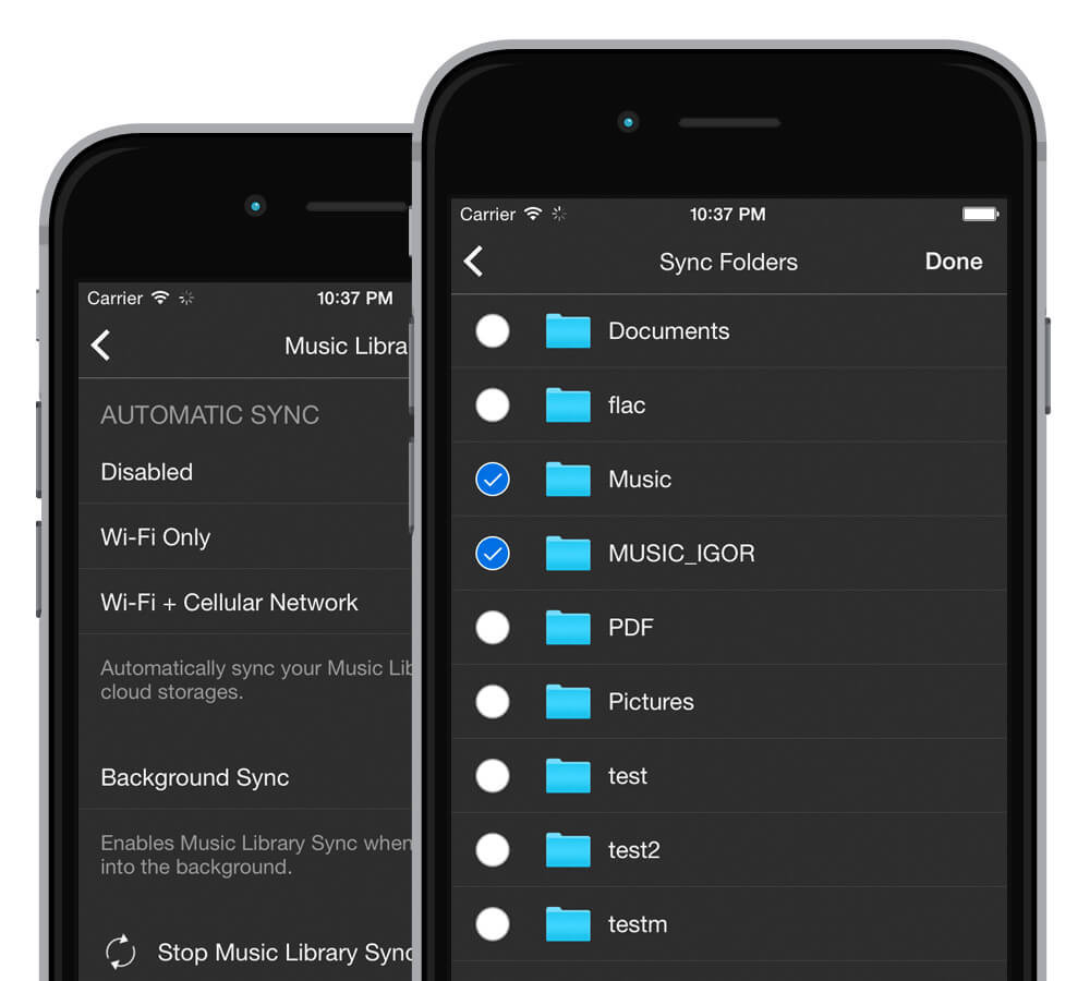 This highly requested feature is now a reality. With automatic sync, you no longer need to manually scan folders every time your cloud content changes. Evermusic will track changes to selected folders and keep your Music Library updated in the background. Simply choose which folders to monitor and let Evermusic do the rest.