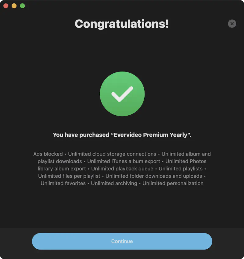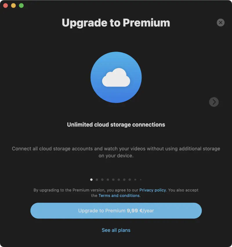 On the other hand, Evervideo Premium unlocks the full experience. You’ll enjoy an ad-free interface, unlimited playlist and queue support, full offline functionality, cloud flexibility, and advanced exporting and personalization options. It’s the best option for users with large video libraries, those who watch content from multiple sources, or anyone looking for a more professional and seamless media player.