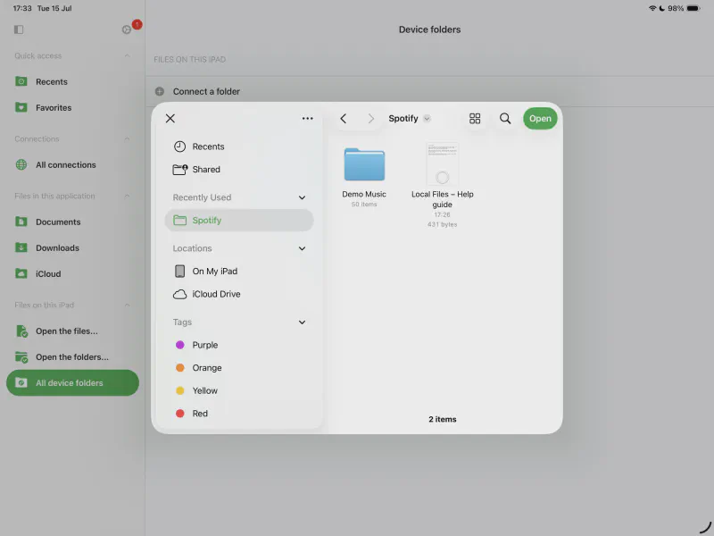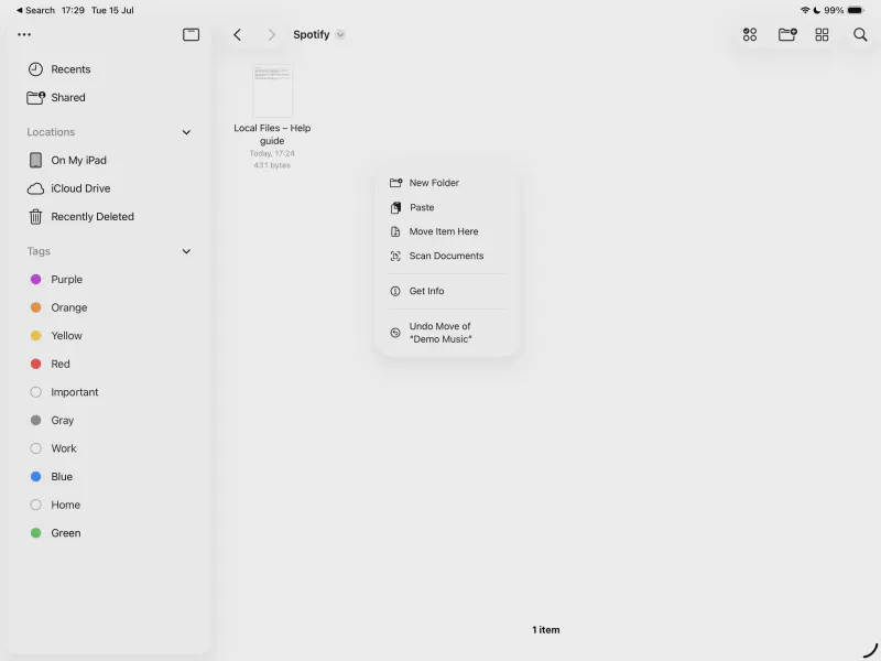 Once permission is granted, open the Files app, go to Locations > On My iPhone/iPad, and find the Spotify folder. This is where local music files should be placed.