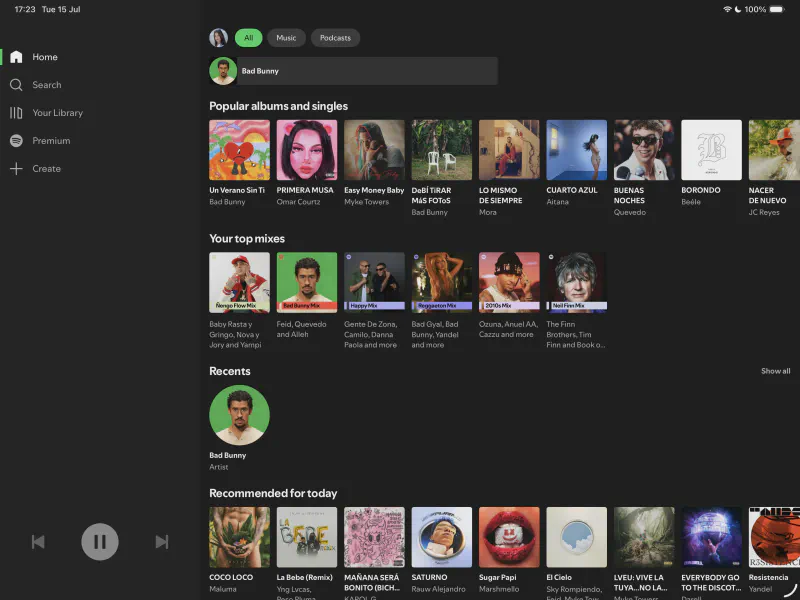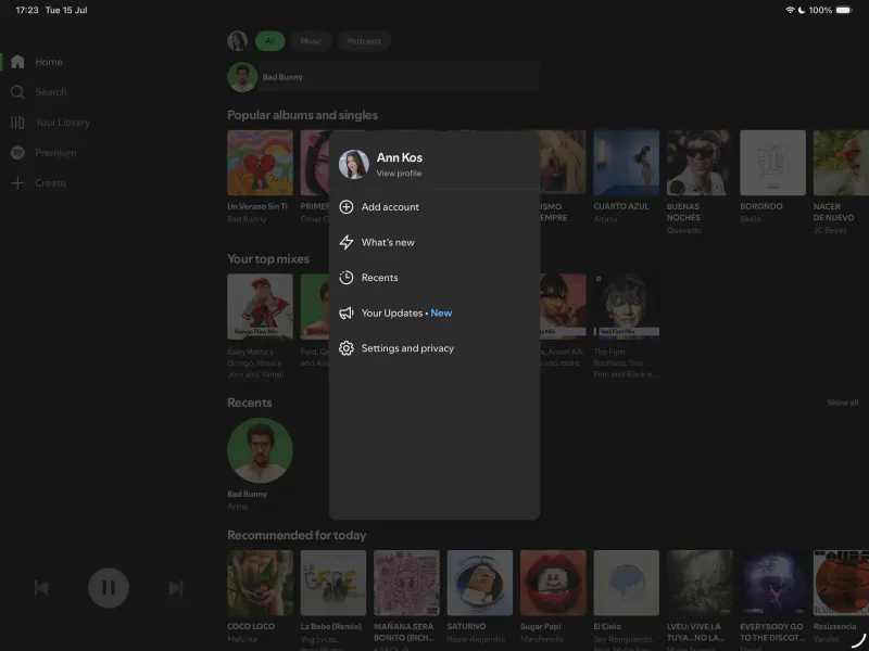 Look in the top left corner of the Spotify home screen and tap your profile picture to open the menu.