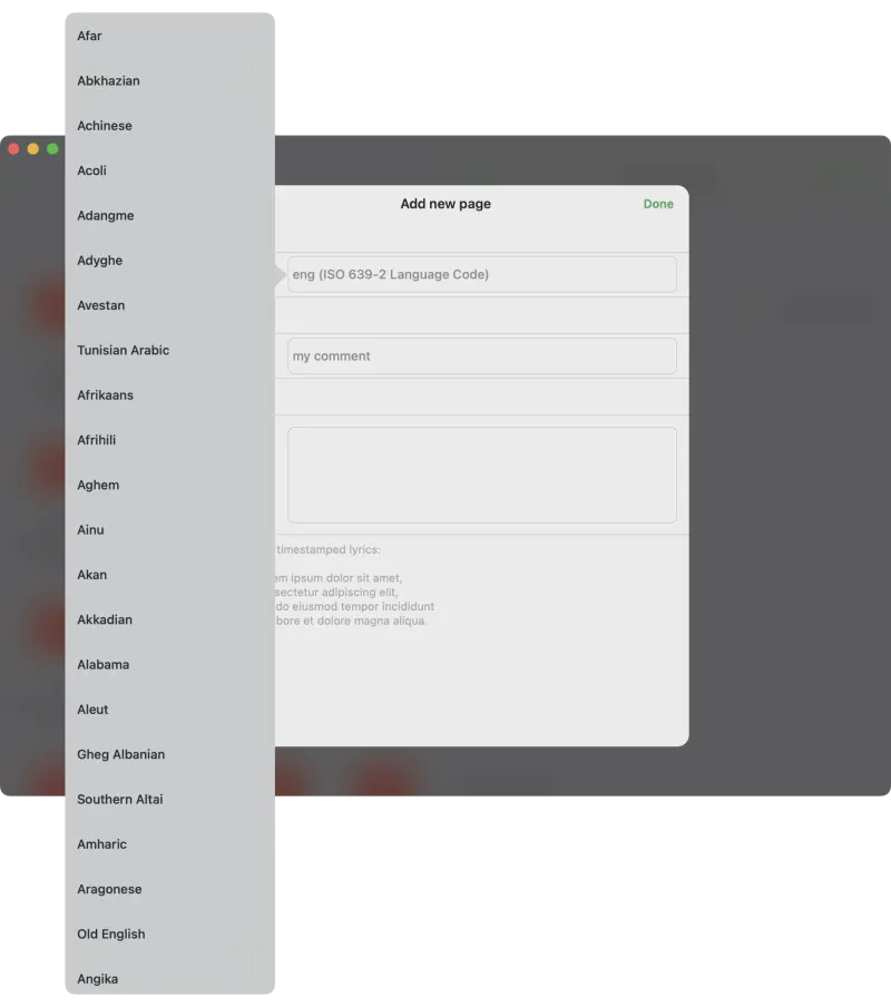 .mp3or.wav) allow you to add lyrics in multiple languages. If you are editing an ID3-tagged file, Evertag enables full multi-language support.