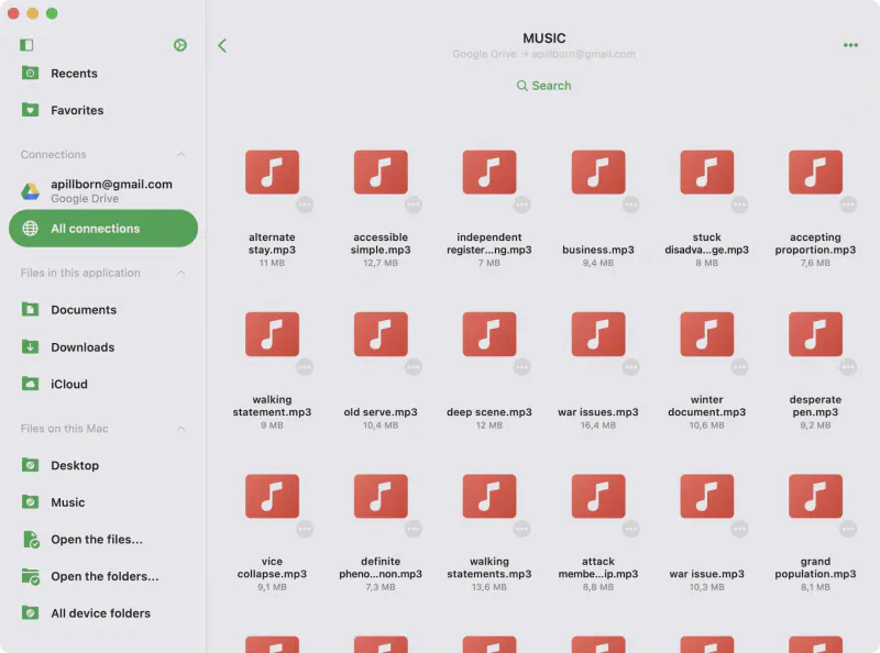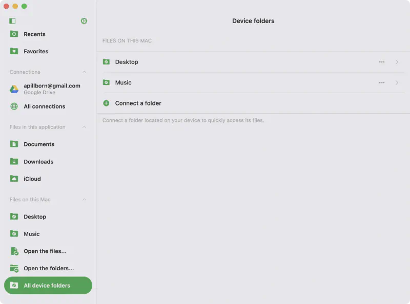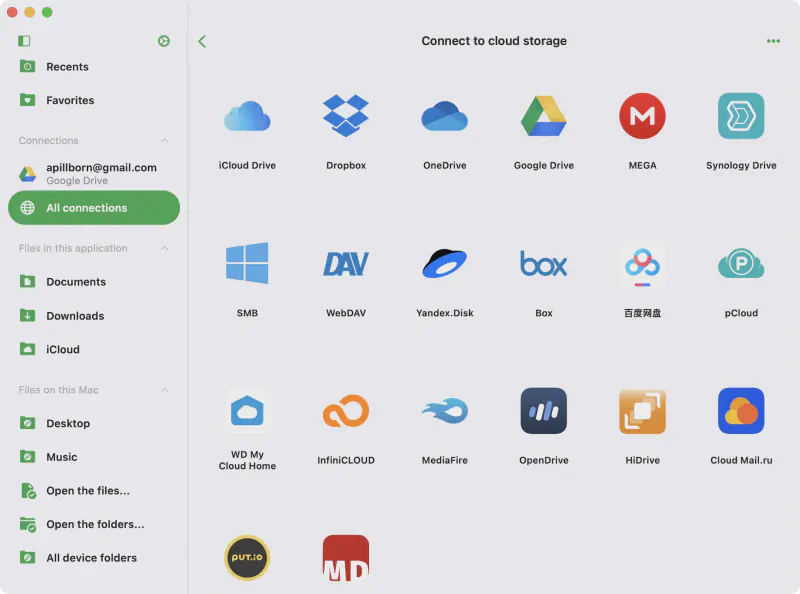 Once connected, your cloud storage will appear in the Cloud Storage section of the app.