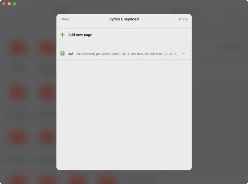 If you’re editing ID3 tags, the next screen will show an Add New Page button. Tap it to begin adding a new lyrics entry.