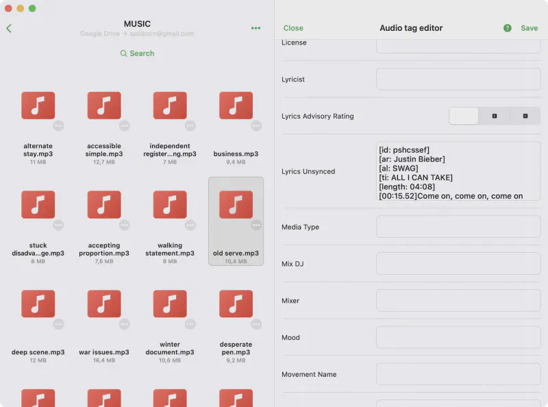 Here’s how to add or update Unsynced Lyrics embedded in your audio files using the Evertag app.