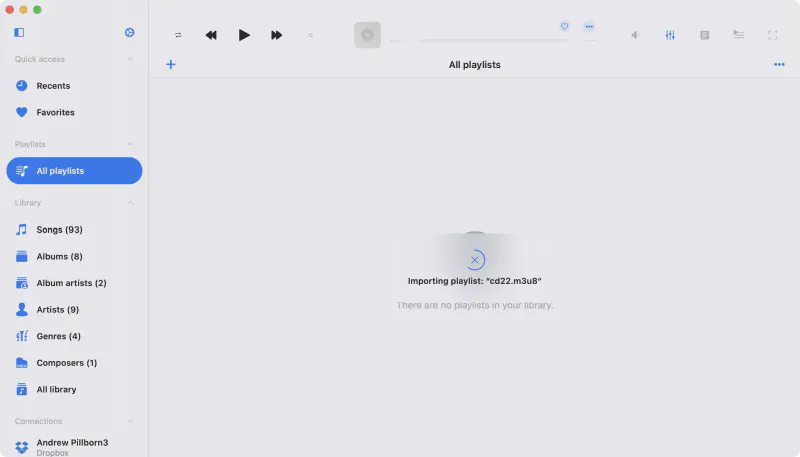 Because the apps run in sandbox mode on macOS, both the playlist file and the media files must be in the same folder for successful import.