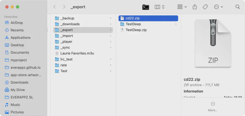 It is formatted correctly, so when you move this ZIP archive to another device and unarchive it, you’ll be able to import the playlist seamlessly.