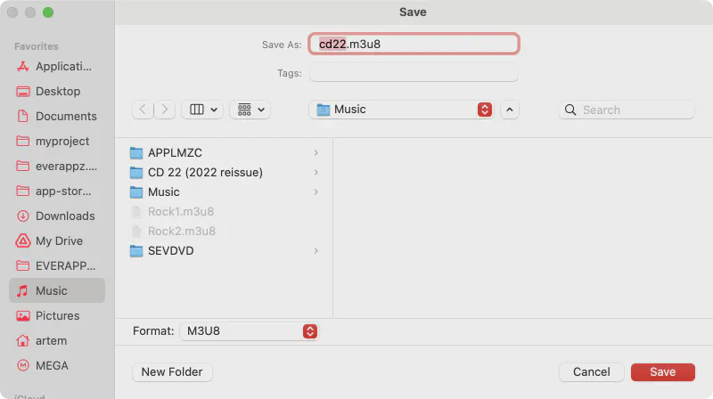 We recommend saving the M3U file in your Music folder. This ensures that all the file paths are consistent, and the import process in Evermusic or Flacbox will work smoothly.